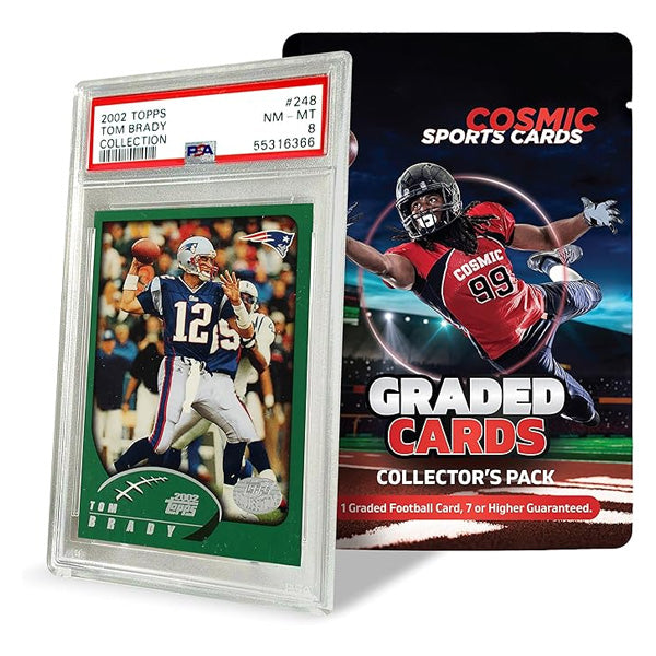 Bring the excitement of the gridiron into your home. Order the Cosmic Gaming Collections NFL Trading Card Pack Grade 7+ Guaranteed now and experience the thrill of discovering football treasures with every pack!