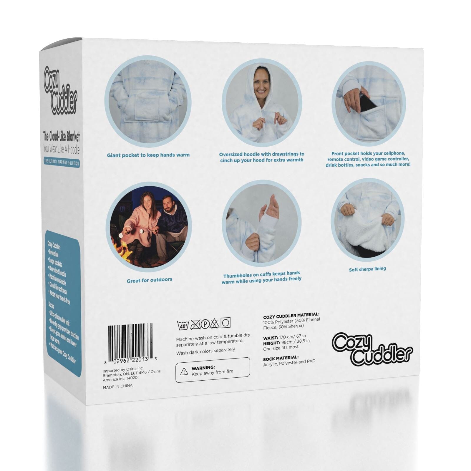 | Includes | (1) Blanket Hoodie, (1) Pair of Socks |