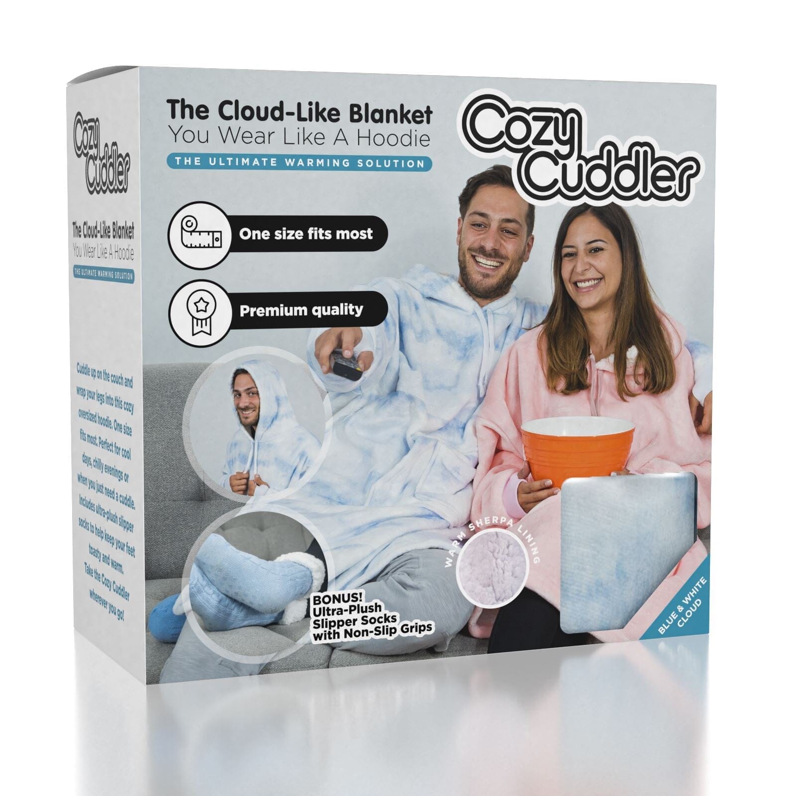 The Cozy Cuddler makes an excellent gift for birthday, anniversary, Christmas, or “just-because”. With cold and flu season around the corner, or a possible second-wave pandemic, this giant-sized hoodie is all the comfort and warmth you need for those cozy nights in with the family or your special someone.