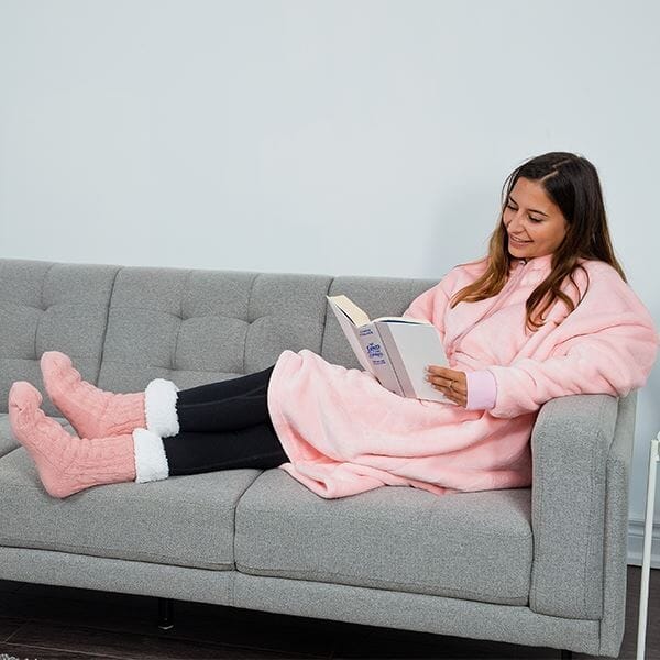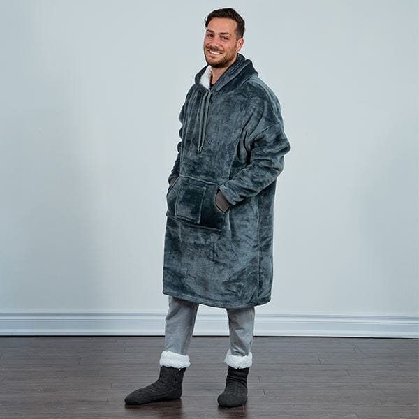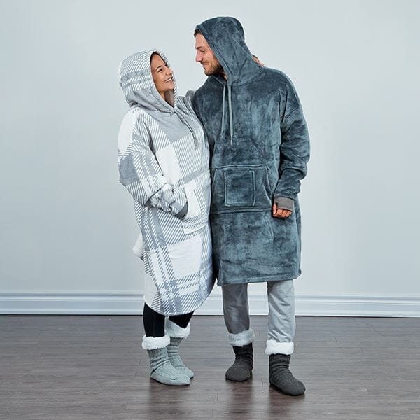 The Cozy Cuddler is like a wearable blanket, complete with an oversized, drawstring hood, sleeves, and front pockets for your hands and phone. It reaches about mid-calf so your legs stay covered and toasty on those chilly winter nights, or summer nights spent camping or at the cottage. Slip into the matching socks as well so your toes can stay just as toasty as the rest of you.