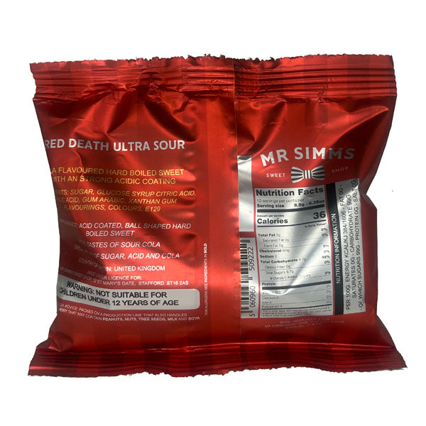 Straight from the legendary Mr. Simms Sweet Shoppe in England, Red Death Ultra Sour is a candy designed for the brave. Combining classic cola flavor with a brutally intense sour coating, these hard-boiled sweets deliver a rollercoaster of taste that starts sweet and ends with a face-scrunching punch.