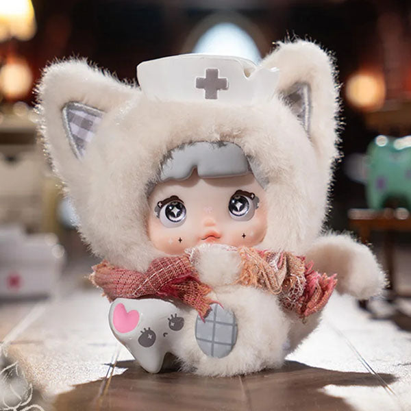 At the heart of each design is a little girl with a delicately crafted vinyl face, dressed in a cozy plush animal costume and holding a themed vinyl accessory. The contrast between the sweet, kawaii aesthetic and the deeper, sometimes melancholic elements gives these collectibles a truly distinctive personality—perfect for fans who love cute designs with a meaningful twist.