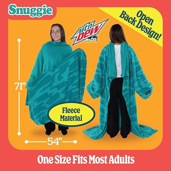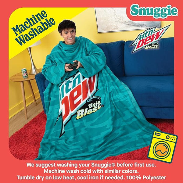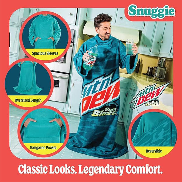 Featuring a fun Mountain Dew Baja Blast-inspired design, it adds a refreshing pop of personality to your loungewear—perfect for fans who love bold style as much as comfort. Cozy, practical, and packed with personality—the Snuggie Baja Blast Edition is your new favorite way to chill.