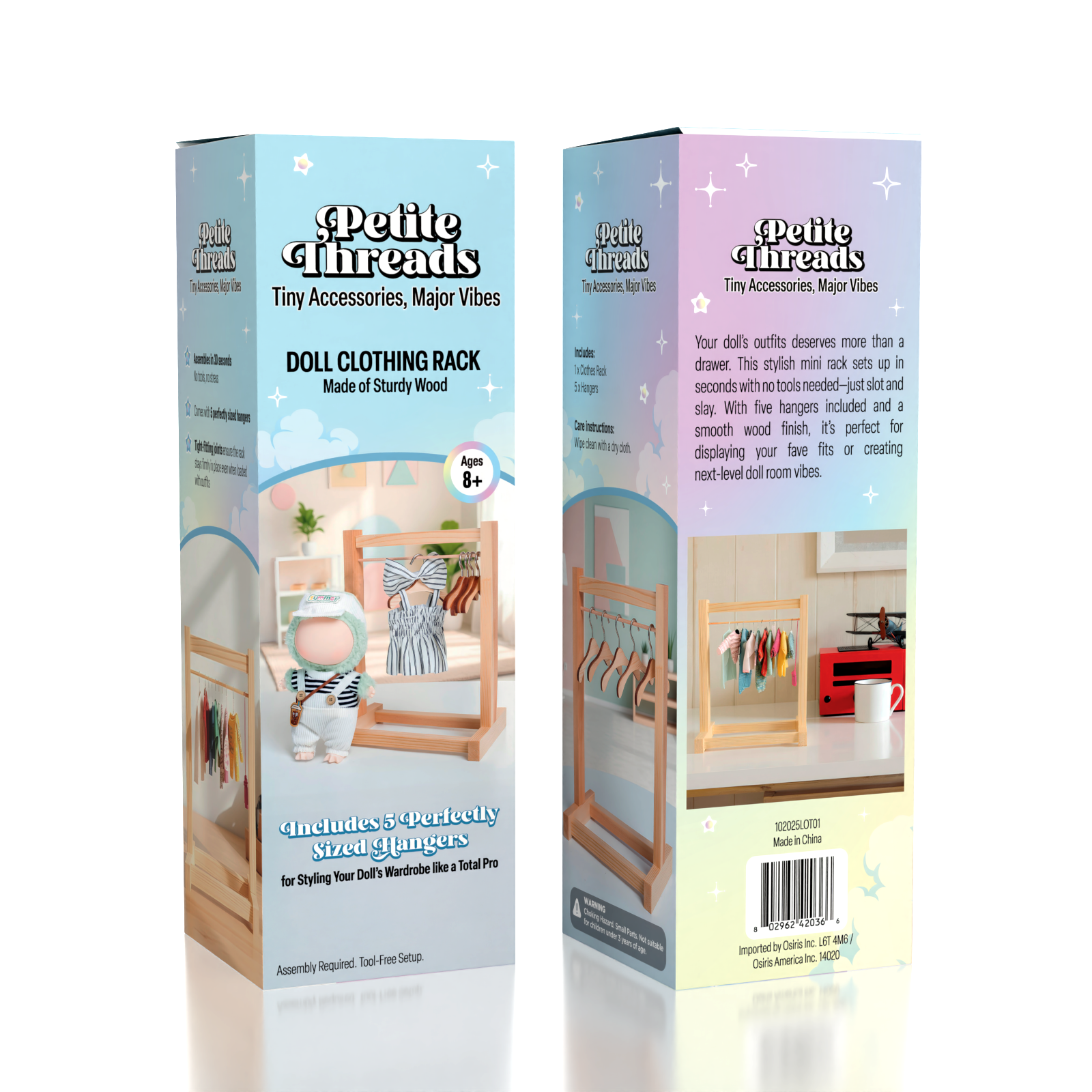 ✨ The Petite Threads Wooden Clothing Rack isn’t just storage—it’s a statement piece for your dolls’ fashion collection. Perfect for kids, collectors, and anyone who believes every outfit deserves the spotlight.